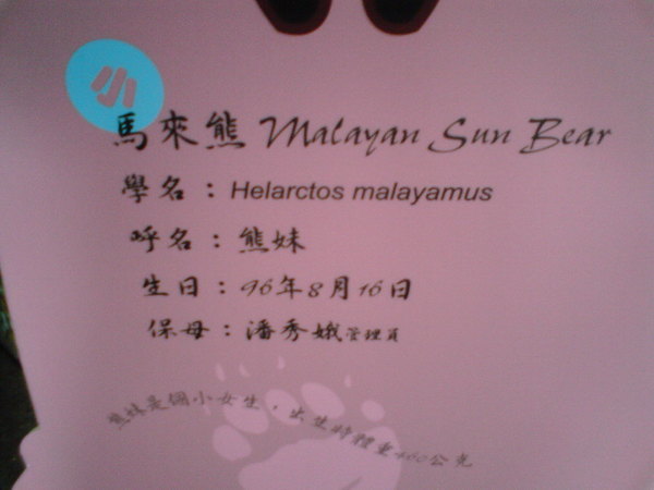 下面是這隻馬來熊寶寶的個人檔案~ 去年才出生的耶!!XD
